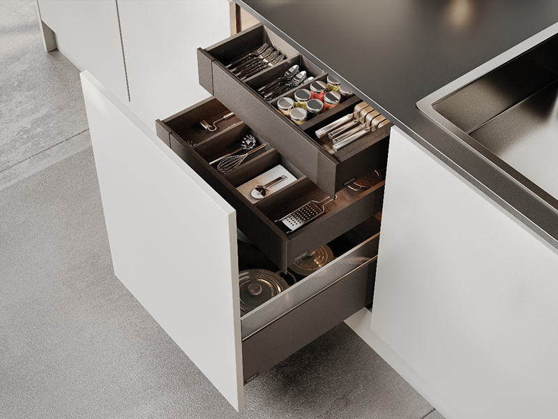 ArtFlow система внутренних разделителей ящика сочетает в себе элегантный и лаконичный дизайн линий с идеальной функциональностью, которую обеспечивают скрытые магниты.