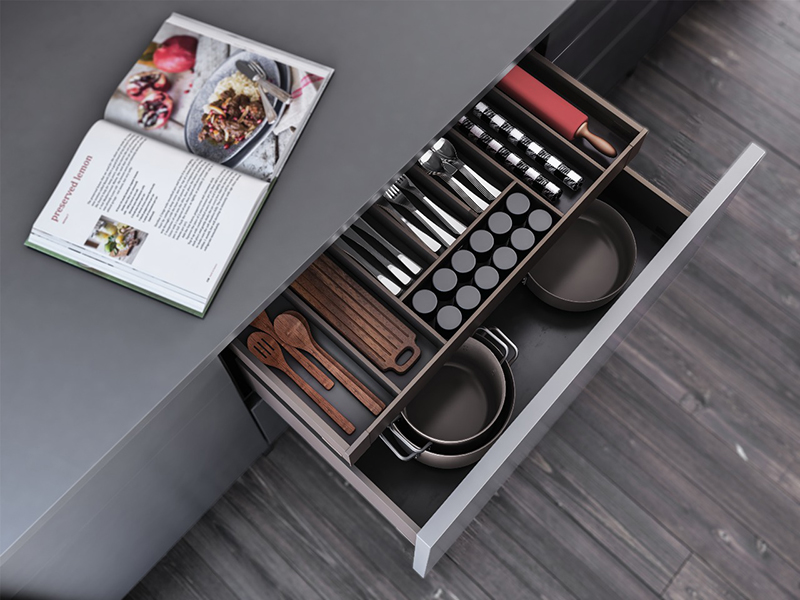 ArtFlow система внутренних разделителей ящика сочетает в себе элегантный и лаконичный дизайн линий с идеальной функциональностью, которую обеспечивают скрытые магниты.