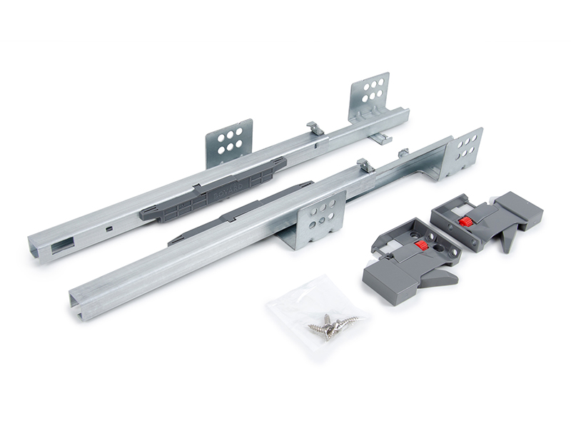 B-Slide DB7776 — направляющие скрытого монтажа неполного выдвижения с клипсой с открытием от нажатия для мебели малых форм без ручек.