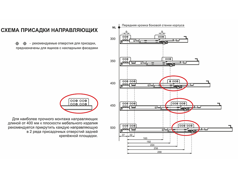 Модель обеспечит бесперебойную работу на протяжении 40 000 циклов открывания / закрывания и имеет дифференцированную нагрузку, учитывающую конструкцию мебели: 300 мм – 15 кг, 350 – мм 17,5 кг, 400 мм – 20 кг, 450 мм – 22,5 кг, 500 мм – 25 кг.