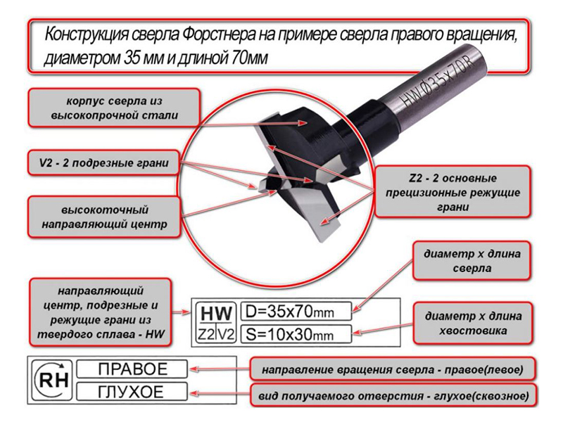 • Всегда используйте сверла Форстнера только по прямому назначению.