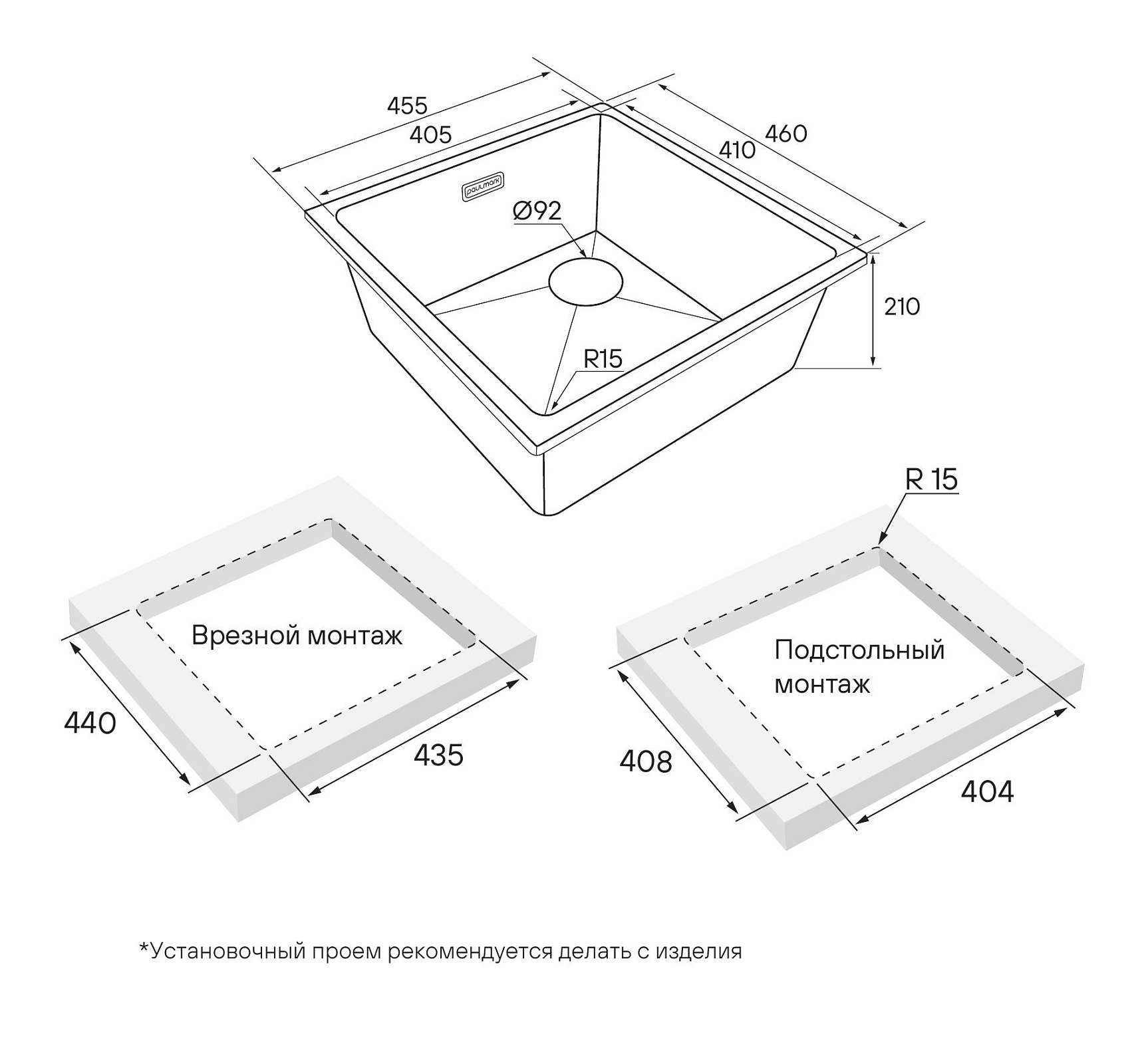 Мойка Paulmark LUMI, LU45SK-DG, 455х460х210 мм, графит, в комплекте