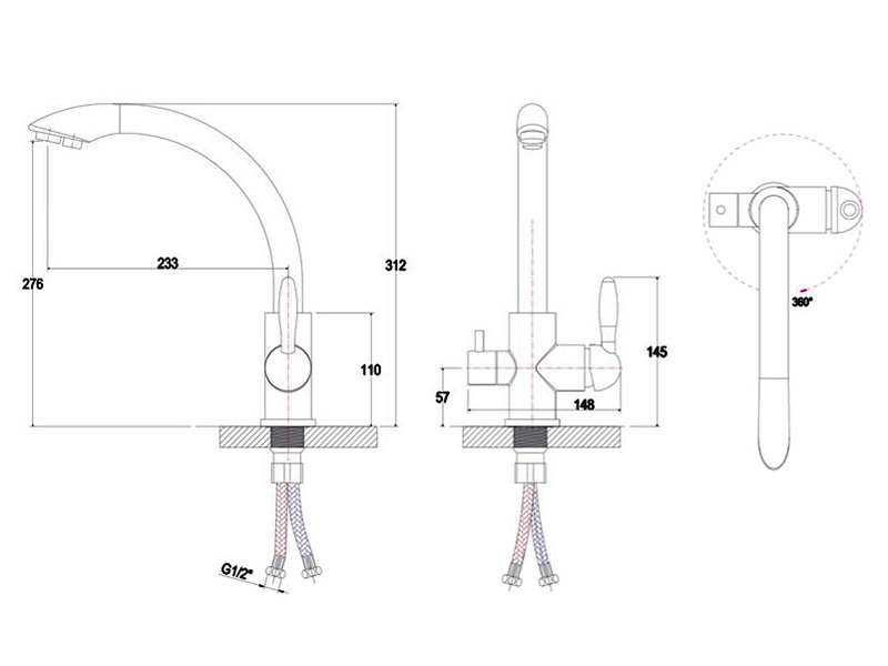 Комплектация: корпус смесителя латунный, индивидуальный крепежный элемент, гибкая подводка 1/2 длиной 40 см, технический паспорт
