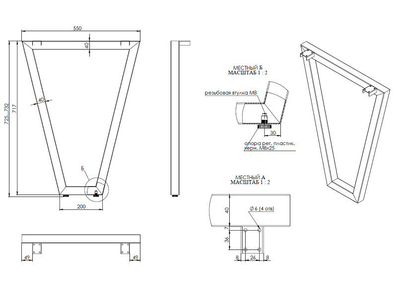 Для столов - Модель : V-образная