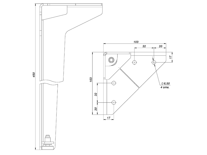 Опора Элегант, регулируемая, 450мм, стальная, белый матовый