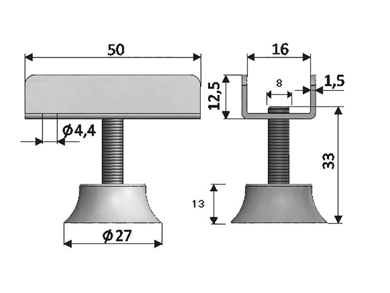 Опора (подпятник) регулируемая П-образная 16мм, белая