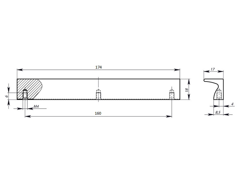 Ручка мебельная, накладная PM(22), 160 мм, алюминий, матовый хром, Валмакс