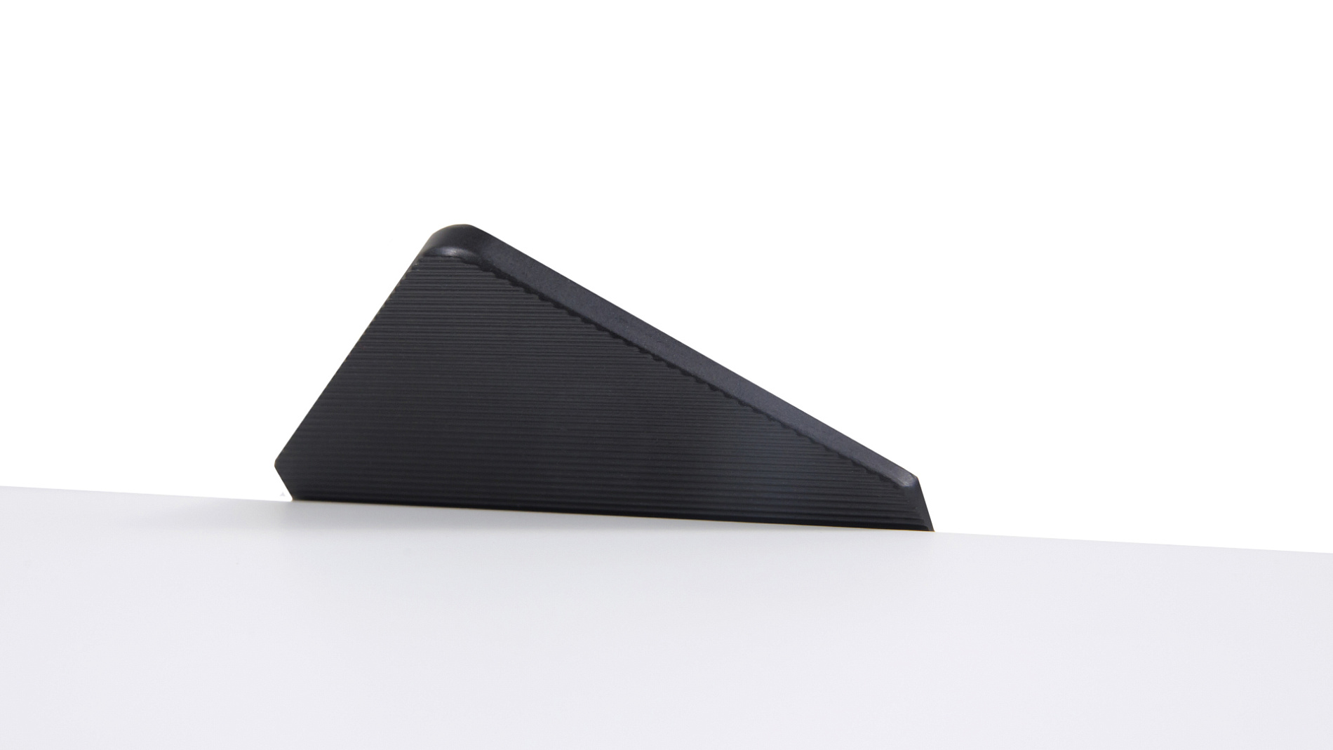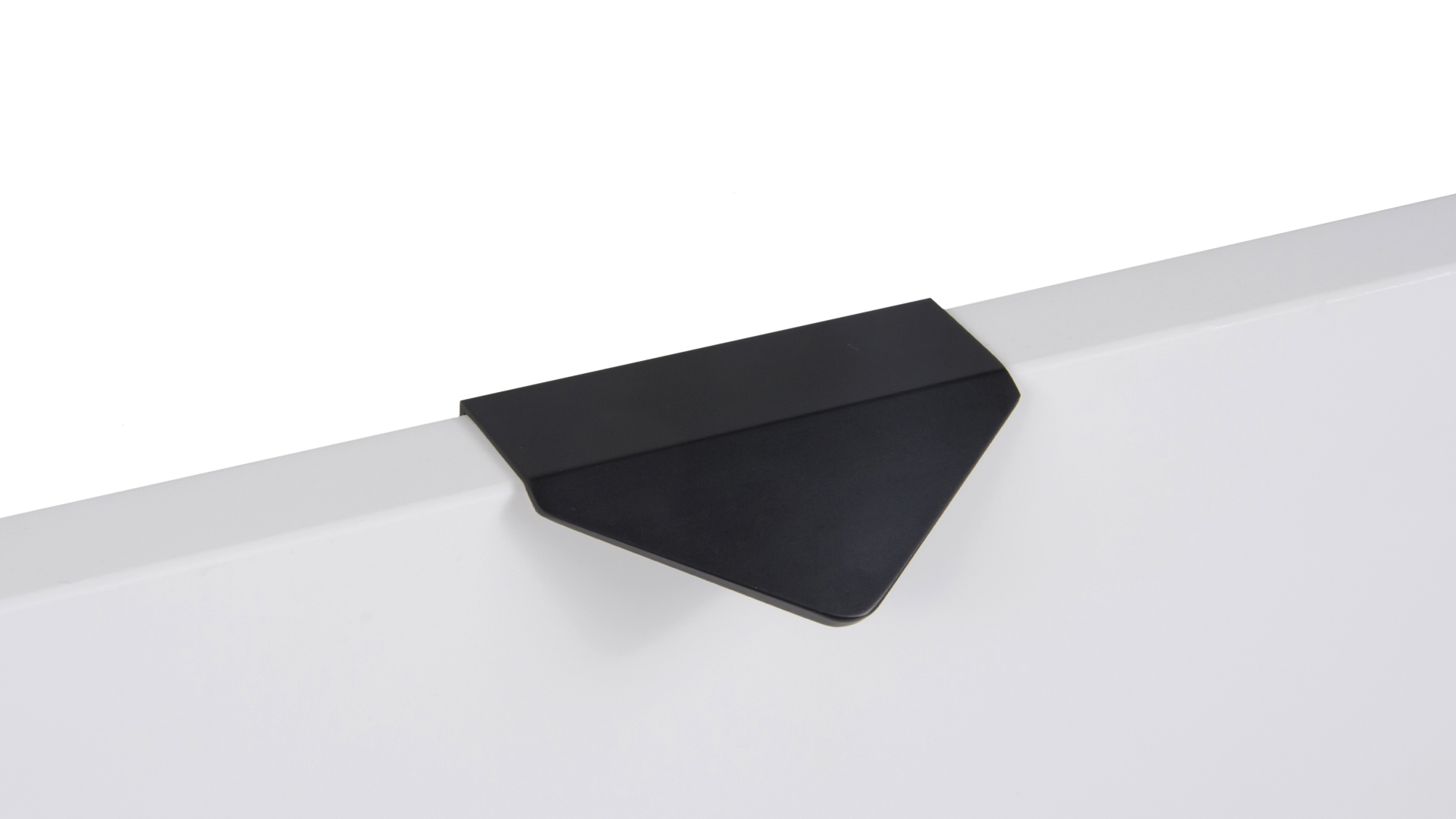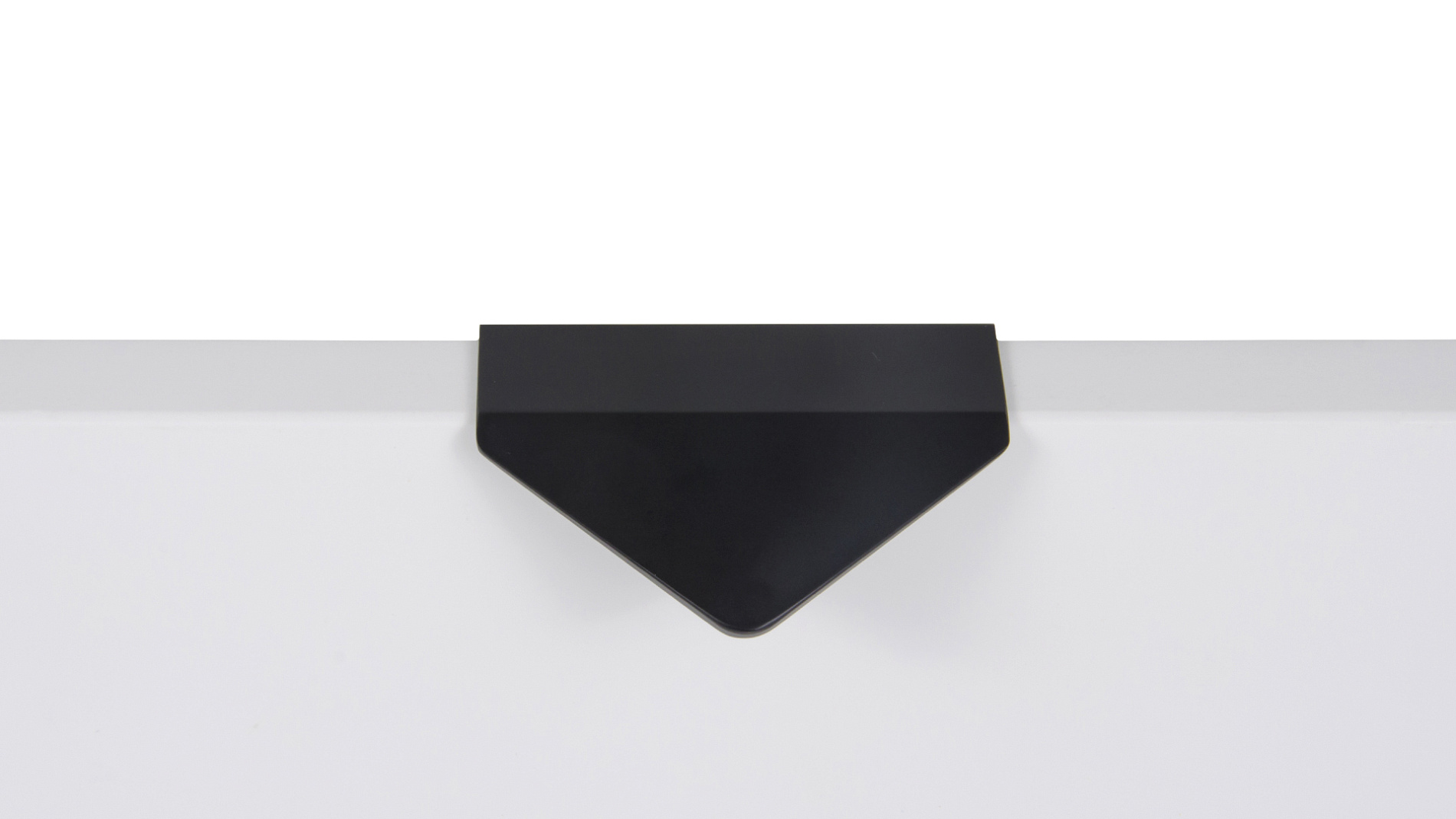 ICON RT014 — торцевая ручка из алюминия, с геометричным выступом в форме треугольника. Для удобства захвата на ручках увеличен отступ язычка, а на его внутренней стороне предусмотрено рифление. Устанавливается наложением, подходит для фасадов толщиной до 18 мм.