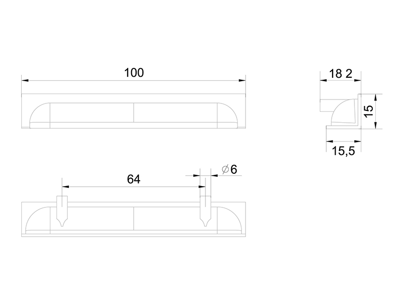 EVA RT020 — торцевая мебельная ручка из цинк-алюминия для установки на фасады толщиной от 16 мм врезным способом.