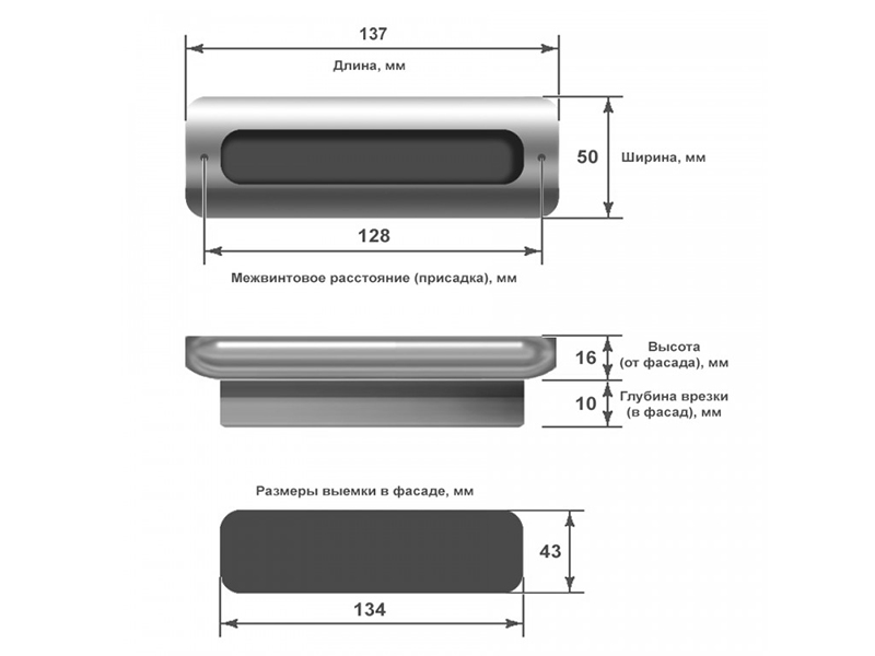 Ручка мебельная, врезная Fuente, 128 мм, сатин, Gamet