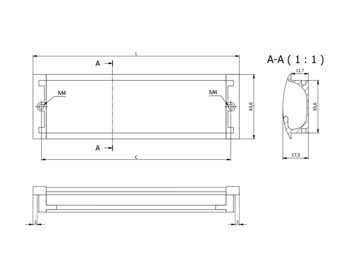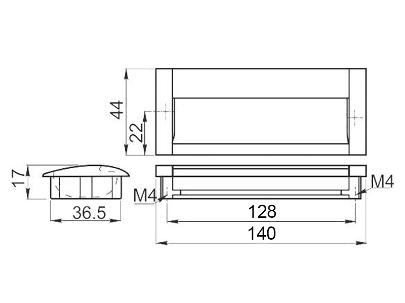 Ручка мебельная, врезная UA-OO-326, 128 мм, черный матовый, GTV