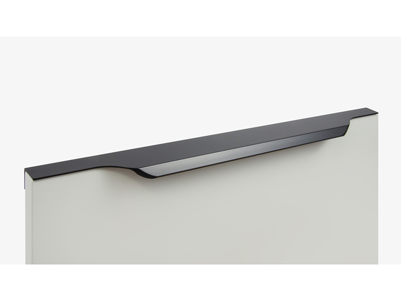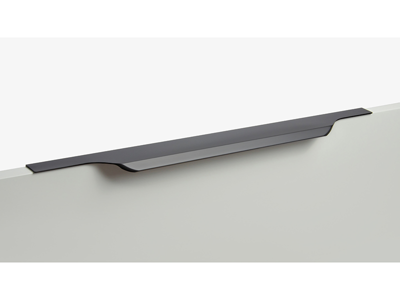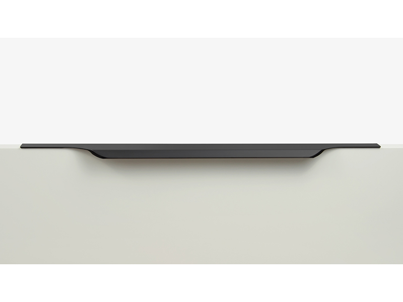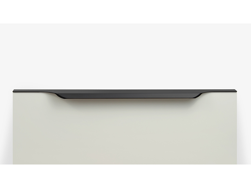TERA подойдёт как для узких бутылочниц и корзин-карго, так и ящиков формата макси. Торцевую ручку, независимо от размера, можно устанавливать не только чётко в размер фасада, но и как широкий язычок. Ручки в виде язычков прекрасно выполняют свою функциональную и эстетическую роль на более широких фасадах.
