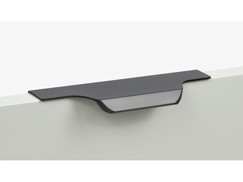 TERA подойдёт как для узких бутылочниц и корзин-карго, так и ящиков формата макси. Торцевую ручку, независимо от размера, можно устанавливать не только чётко в размер фасада, но и как широкий язычок. Ручки в виде язычков прекрасно выполняют свою функциональную и эстетическую роль на более широких фасадах.