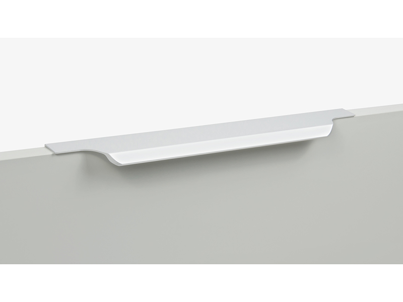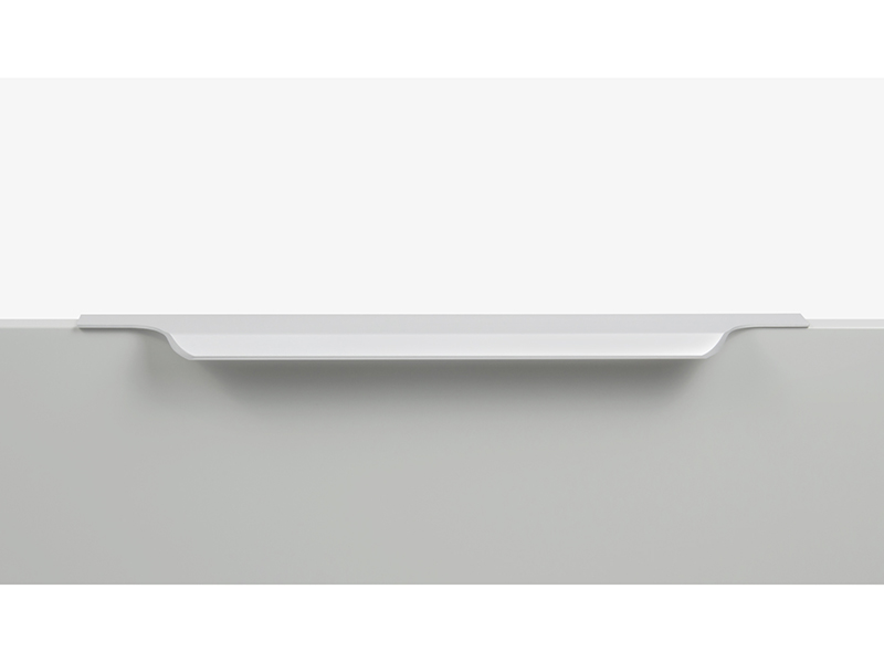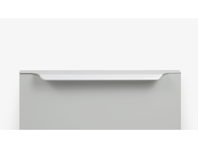 TERA подойдёт как для узких бутылочниц и корзин-карго, так и ящиков формата макси. Торцевую ручку, независимо от размера, можно устанавливать не только чётко в размер фасада, но и как широкий язычок. Ручки в виде язычков прекрасно выполняют свою функциональную и эстетическую роль на более широких фасадах.