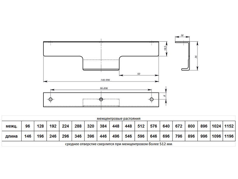 Ручка мебельная, торцевая PN(11)01, 224/296 мм, чёрный матовый, Валмакс