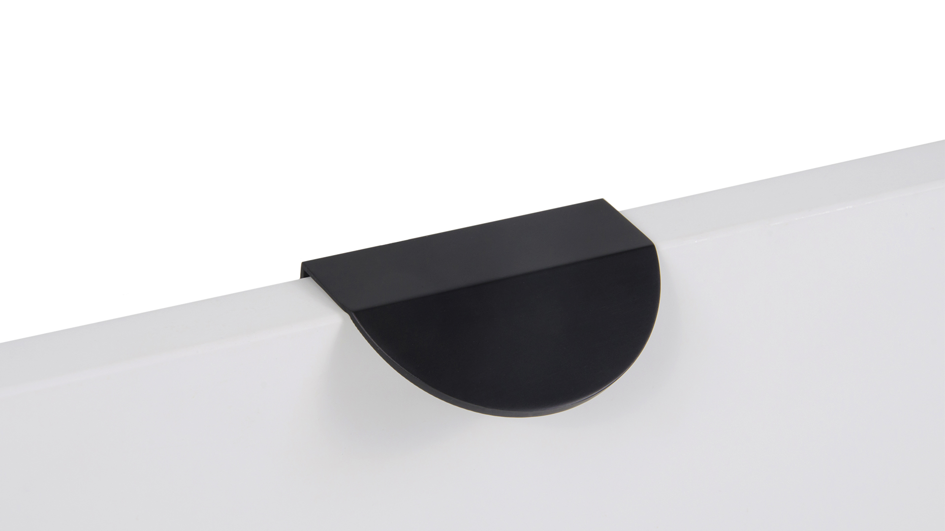 VIVA RT012 — торцевая ручка из алюминия, с геометричным выступом в форме полукруга. Для удобства захвата на ручках увеличен отступ язычка, а на его внутренней стороне предусмотрено рифление. Устанавливается наложением, подходит для фасадов толщиной до 18 мм.