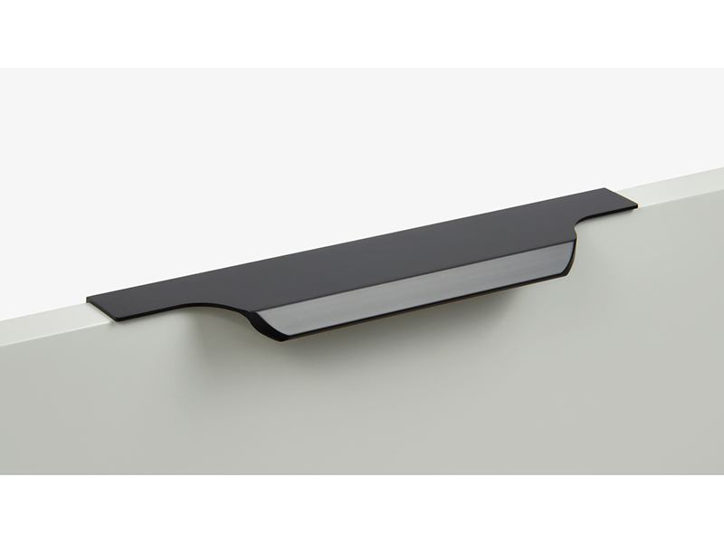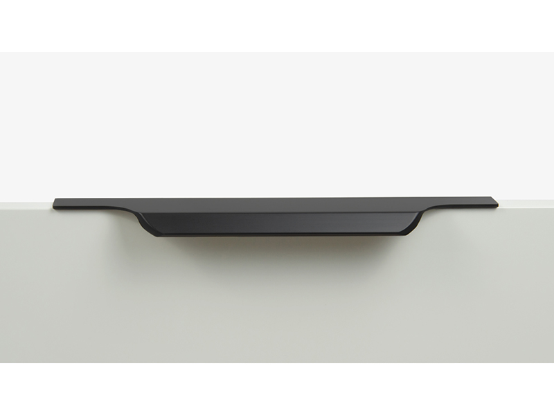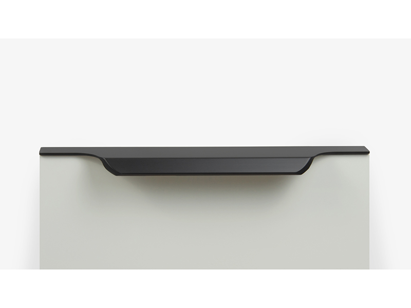 TERA подойдёт как для узких бутылочниц и корзин-карго, так и ящиков формата макси. Торцевую ручку, независимо от размера, можно устанавливать не только чётко в размер фасада, но и как широкий язычок. Ручки в виде язычков прекрасно выполняют свою функциональную и эстетическую роль на более широких фасадах.