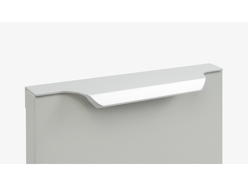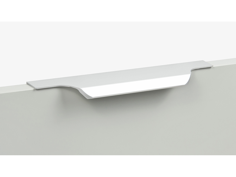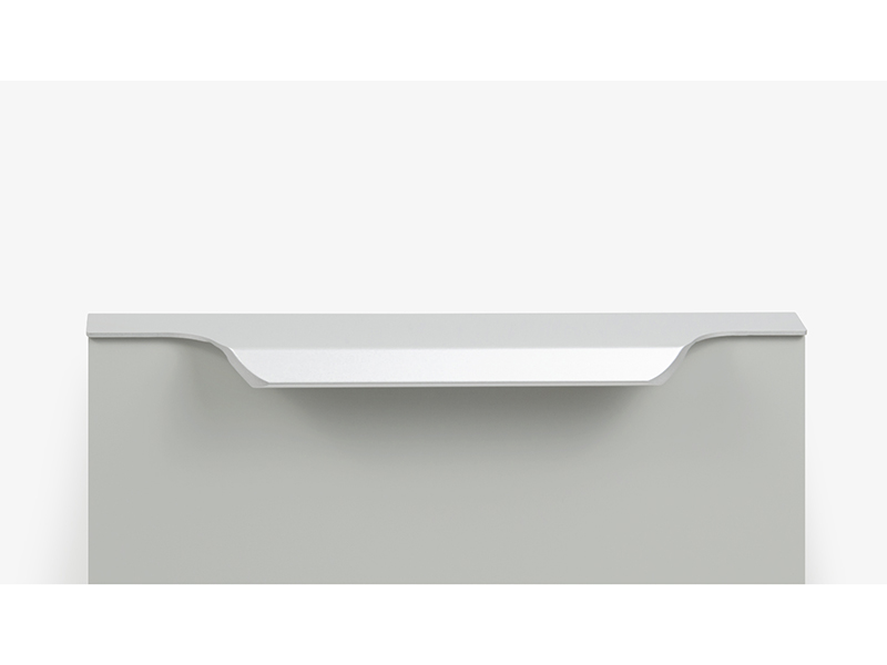 TERA подойдёт как для узких бутылочниц и корзин-карго, так и ящиков формата макси. Торцевую ручку, независимо от размера, можно устанавливать не только чётко в размер фасада, но и как широкий язычок. Ручки в виде язычков прекрасно выполняют свою функциональную и эстетическую роль на более широких фасадах.