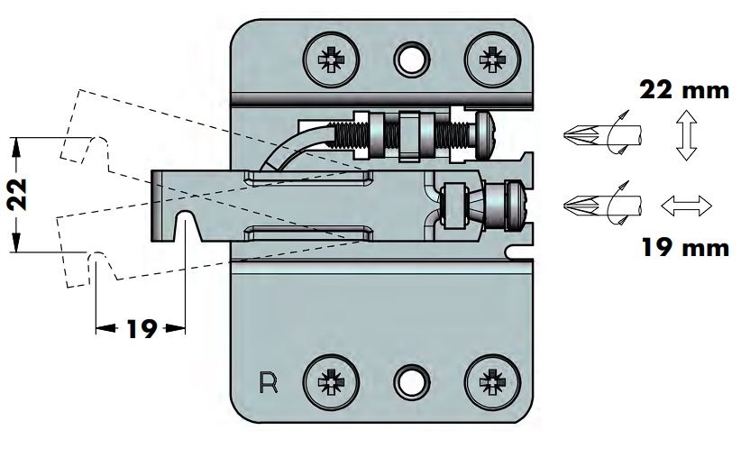 Регулировка по глубине: 19 мм