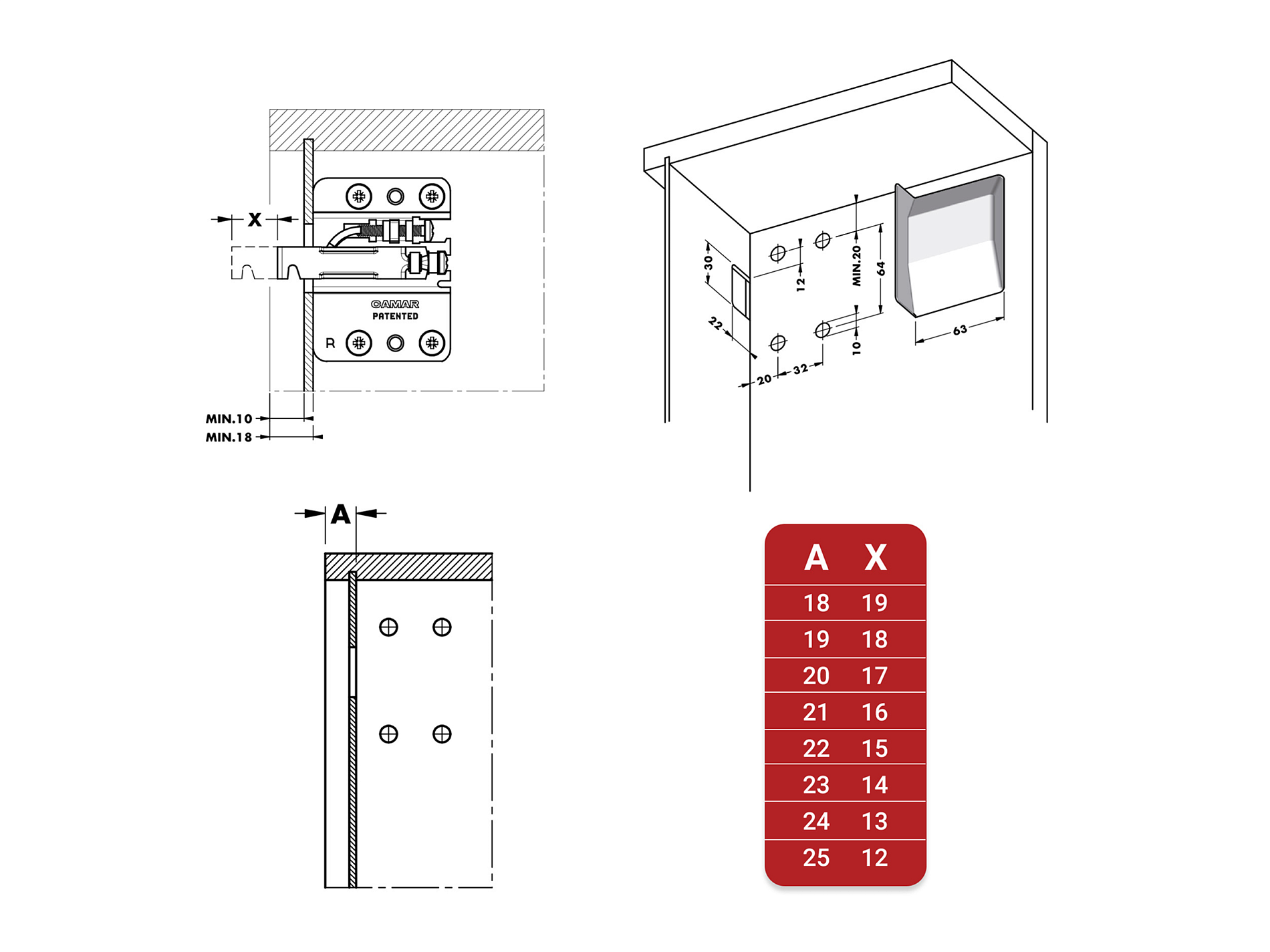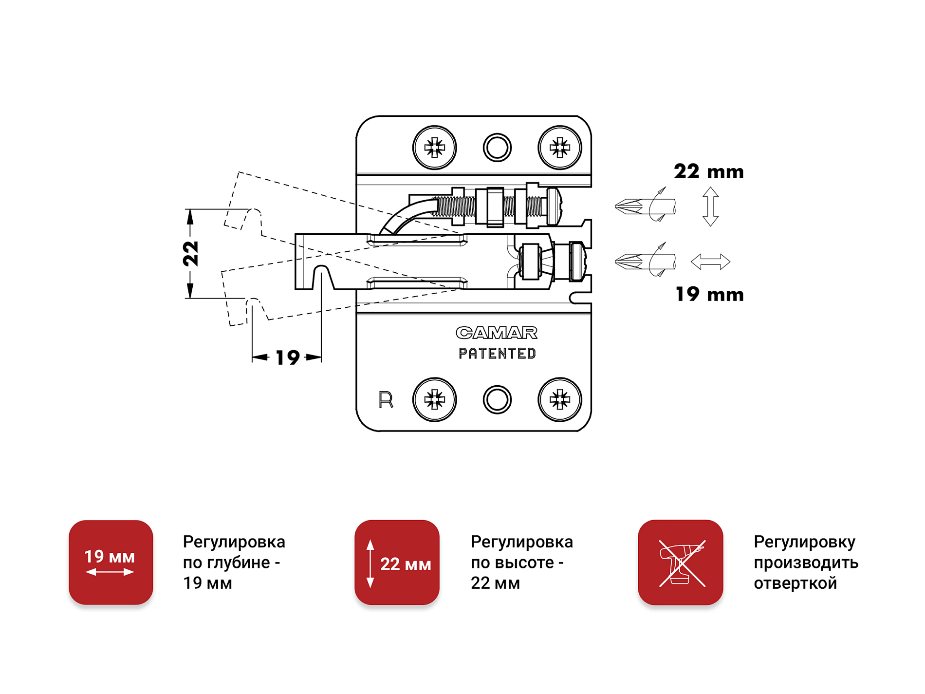 - по глубине: 19 мм