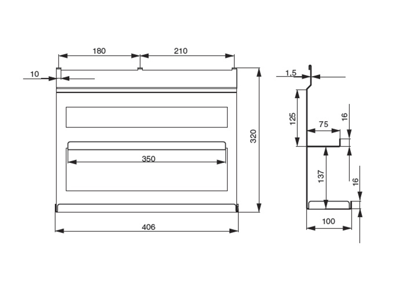 Габаритные размеры (мм): 406х100х320