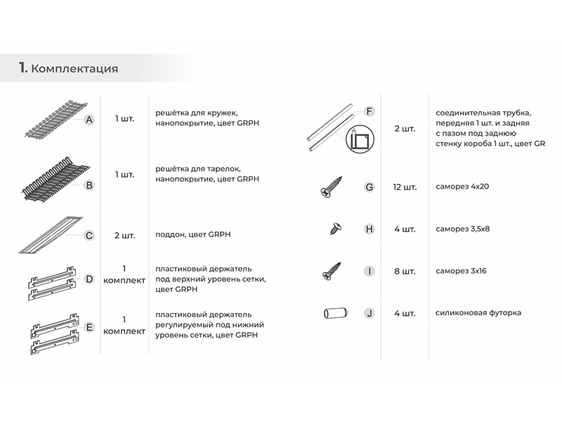 • Комплекты пластиковых держателей нижнего и верхнего уровня - 2 шт.
