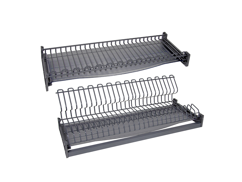 STUDIO FL 16 SU09 — сушка для посуды в верхнюю базу для мебели из плит толщиной 16 мм. Модель выполнена в современном дизайне из плоского стального прутка в нанопокрытии графитового цвета с эффектом самоочищения и водоотталкивания. Такое покрытие обеспечивает повышенную износостойкость, ударопрочность и устойчивость к коррозии.