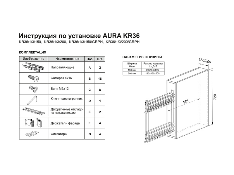 Направляющие к бутылочнице AURA приобретаются отдельным кодом