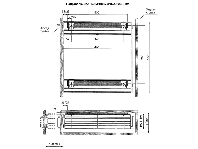 Бутылочница может быть установлена как на шариковых направляющих с доводчиком, так и на направляющих без него