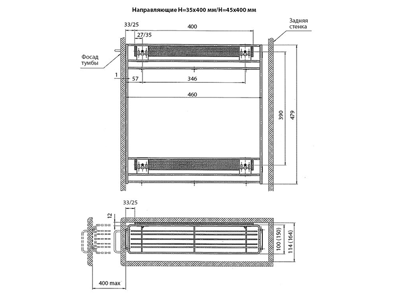 Бутылочница может быть установлена как на шариковых направляющих с доводчиком, так и на направляющих без него