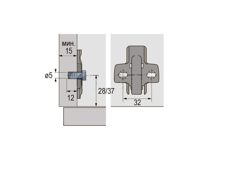 Предустановлены евровинты для отверстий Ø 5х12мм