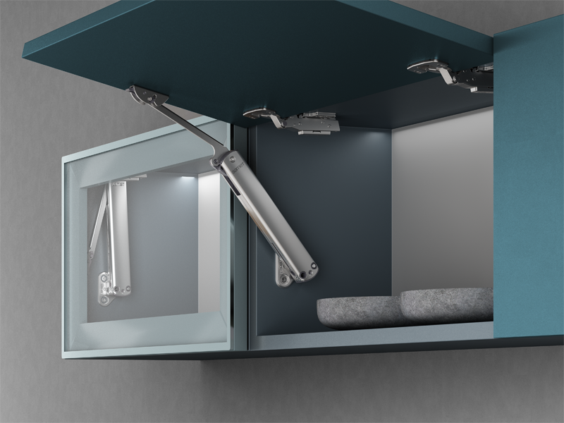 В случае открывания Push to Open для фасадов высотой до 380 мм рекомендуется использовать толкатели с усилием 22N и 36N при высоте 380-600 мм.
