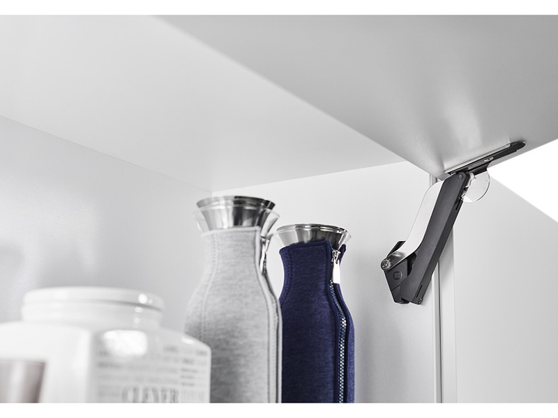 Механизм обеспечивает плавное и бесшумное открывание, закрывание и фиксацию фасада в любом положении (FreeStop).