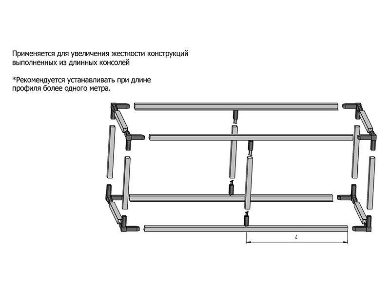 Применяется для увеличения жесткости конструкций, выполненных из длинных профилей.