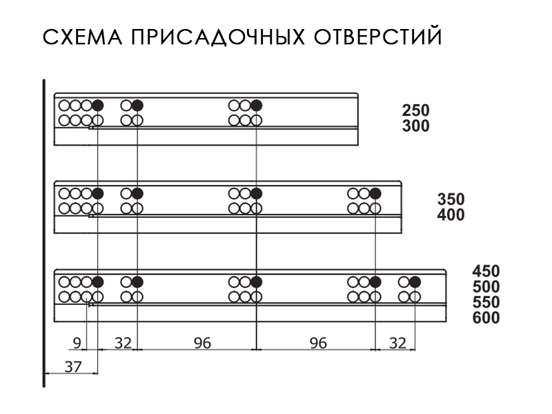 • Номинальная длина: 250/300/350/400/450/500/550/600 мм