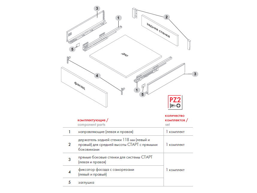 СТАРТ SB19 – комплект систем выдвижения для сборки выдвижного мебельного ящика с прямыми боковинами средней высоты 118 мм для минимальной высоты проёма 147 мм.