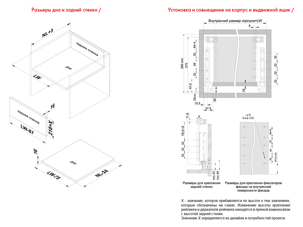 Комплект СТАРТ SB18 позволяет создавать выдвижные мебельные ящики любой желаемой высоты с помощью дополнительных рядов рейлингов.