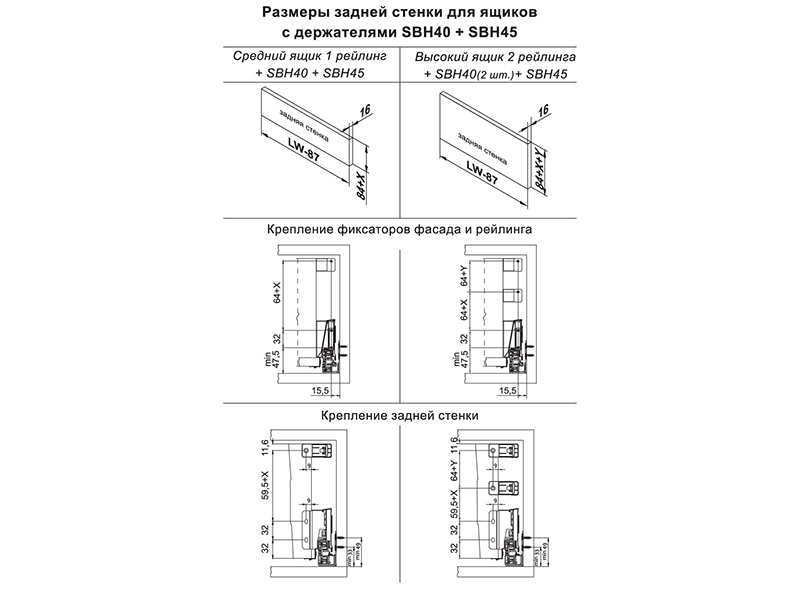 Комплект СТАРТ SB08 позволяет создавать выдвижные мебельные ящики любой желаемой высоты с помощью дополнительных рядов рейлингов.