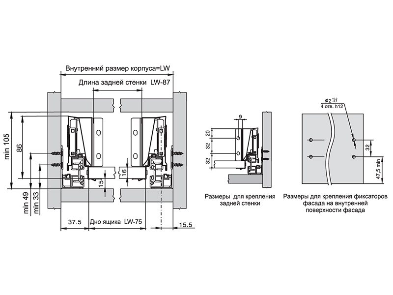 СТАРТ SB08 – комплект систем выдвижения для сборки выдвижного мебельного ящика с традиционными боковинами стандартной высоты
